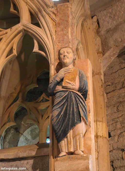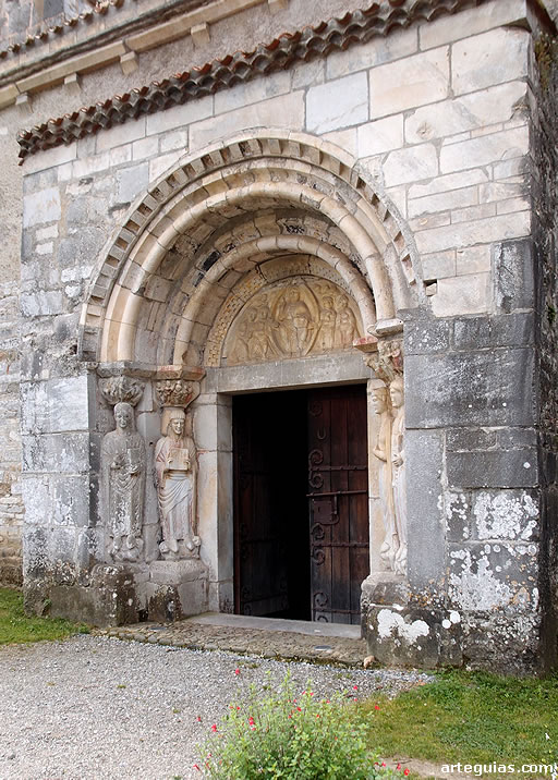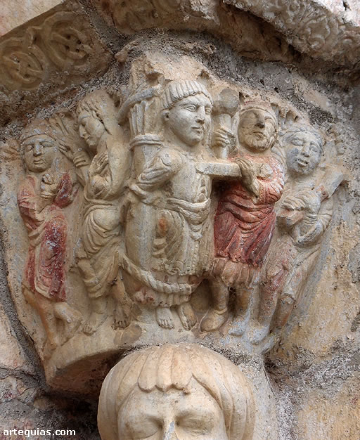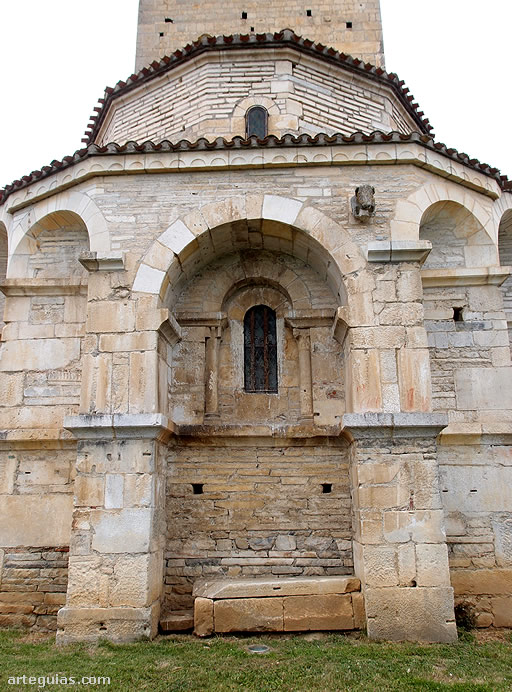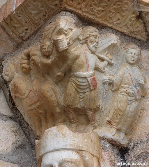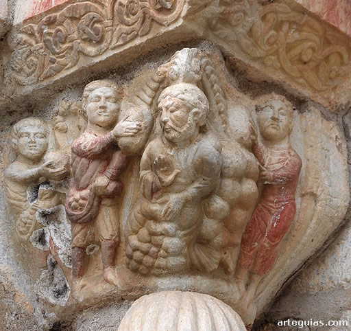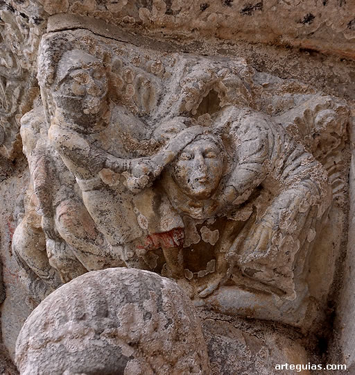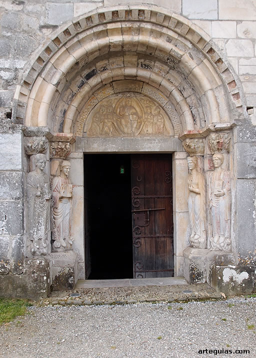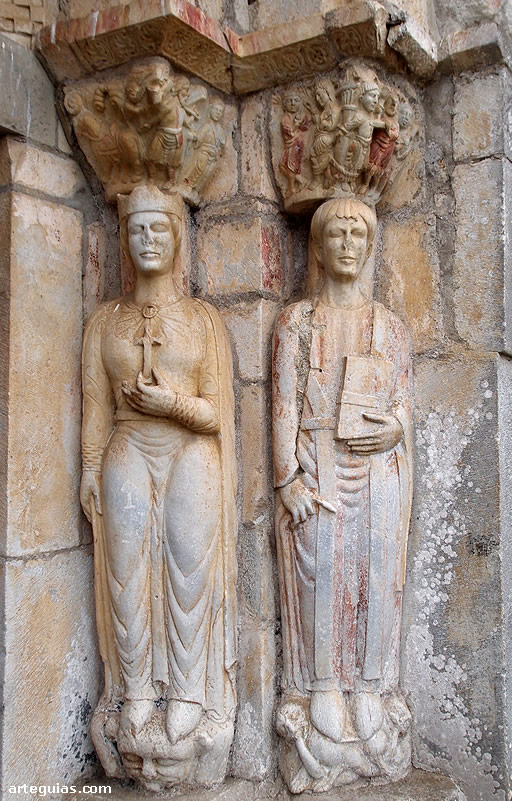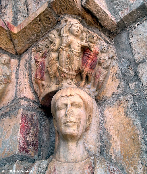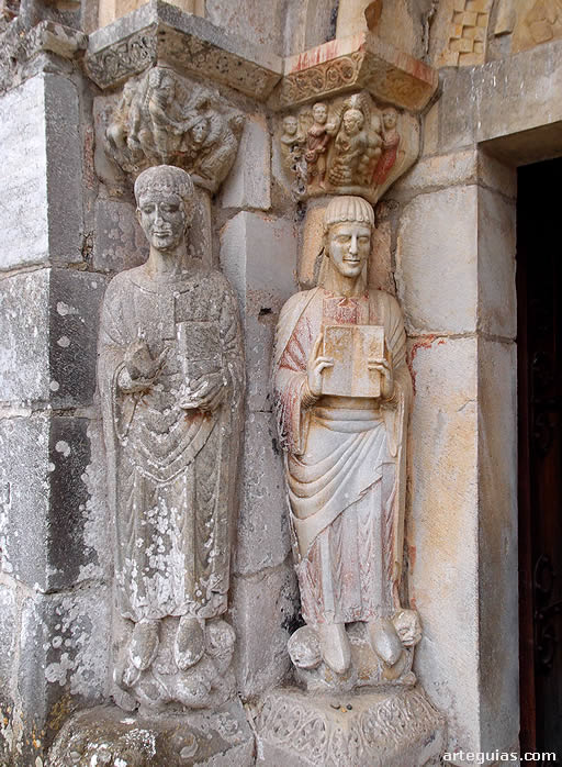 que abraza dos arquivoltas de medio punto apeadas sobre estatuas-columna