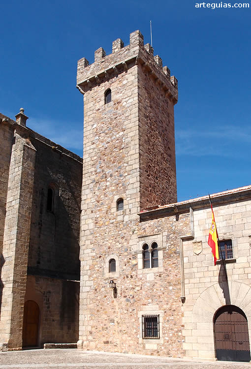 y la plaza de Santa María, junto a la Torre de Bujaco.