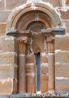El ábside tiene un ventanal en el centro con arquivolta