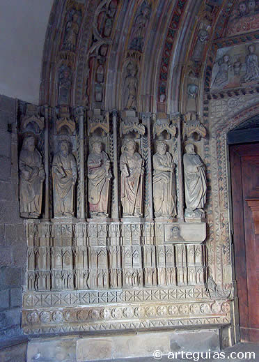 de arquivoltas apuntadas que caen sobre doce estatuas columnas que