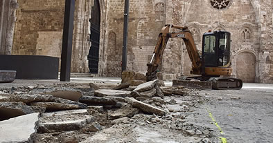 La fachada sur de la iglesia del Mercado estaba destrozada.