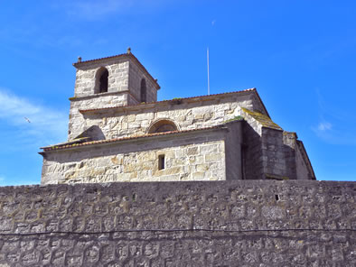 junto al puente sobre el río Valderaduey, y destaca su ábside,