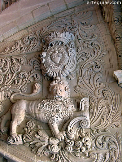 entre su ornamentación dos magníficos leones que parecen
