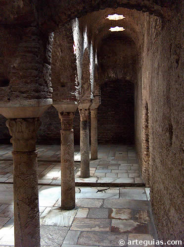 de arcos de herradura sobre columnas cuyos capiteles son distintos,
