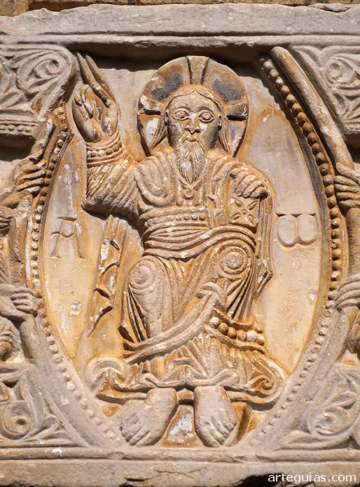En el centro de este dintel aparece Cristo en Majestad