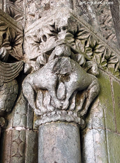 y canecillos del tejaroz son muy ricos en escultura donde aparecen