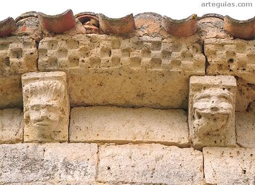 Bajo un tejaroz sostenido por ocho canecillos añadidos