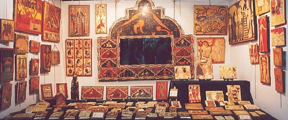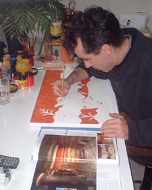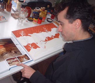 Una vez elegida la obra a reproducir y sus dimensiones, se elige la tabla sobre la cual se extiende una capa de estuco con mayor o menor relieve según lo requiera el tema escogido. A continuación se realiza el dibujo y se pinta la pieza. Cuando ha secado se le aplican patinas envejecedoras y se deterioran las zonas que lo necesiten para lograr mayor fidelidad. (Ver imágenes)