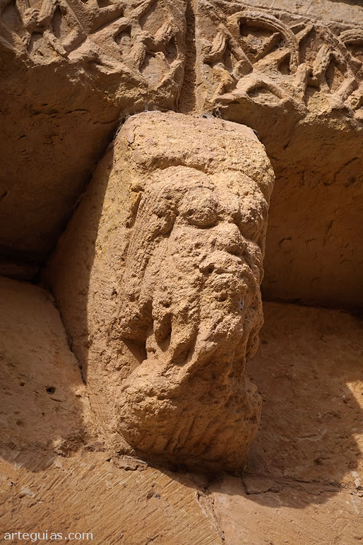 sencilla puerta románica de entrada al templo, de dos arquivoltas
