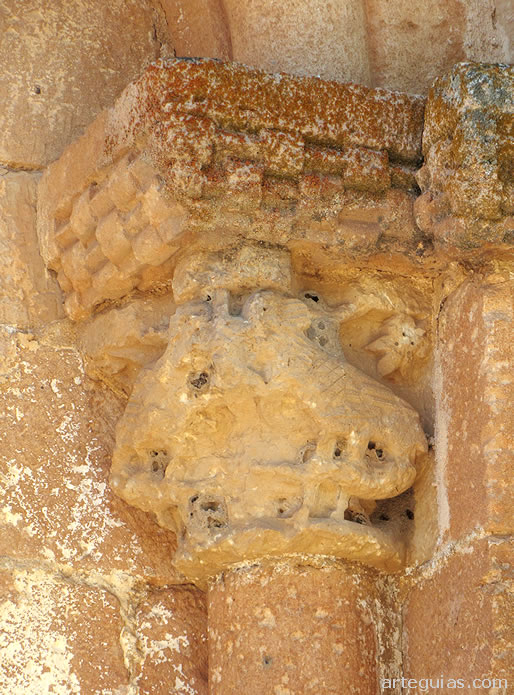 La chambrana y los cimacios de los capiteles comparten un peculiar