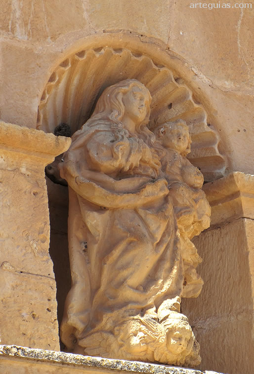 por una hornacina avenereda que cobija una escultura de la Virgen