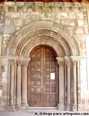 tres arquivoltas de baquetones, escocias y zigzagueado sobre seis