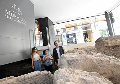 arqueológicos de la muralla medieval de Murcia en el edificio