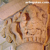 exteriores son historiados. Destacan los capiteles del arco triunfal