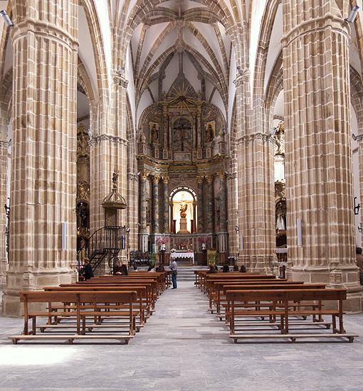 el interior con sus bóvedas de crucería y las dos